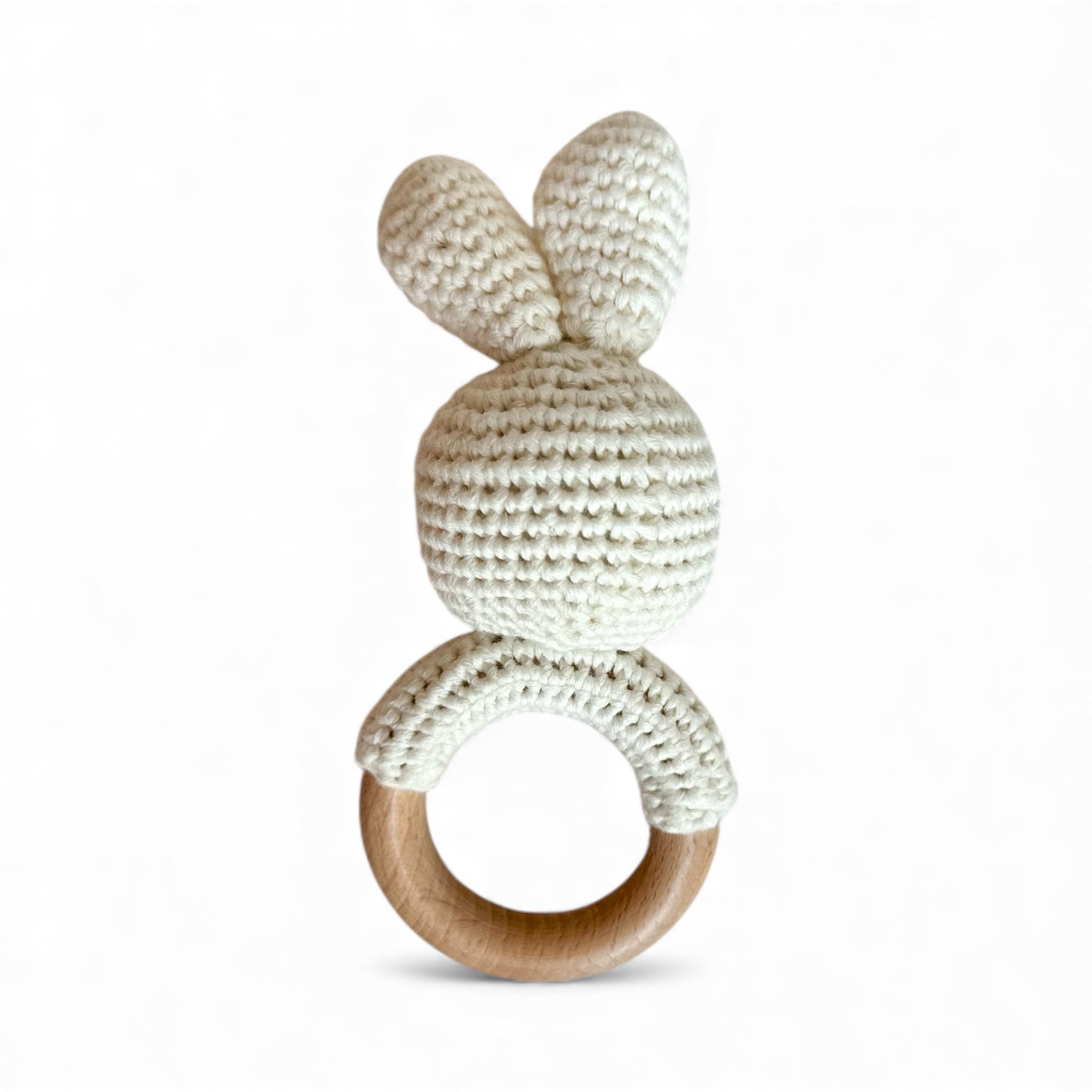 • 1 anello da dentizione con testa di coniglietto (cotone + legno)
